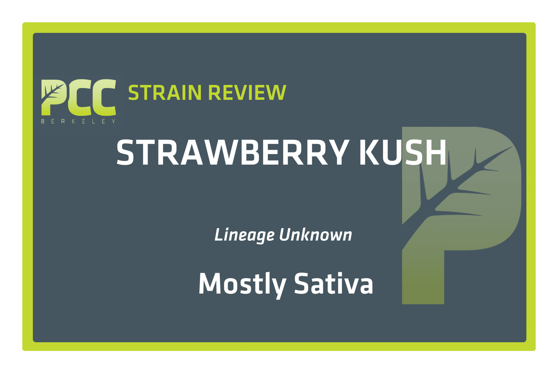 Dude, the genetics were just released about 2 and 1/2 weeks ago, Strawberry Kush is Strawberry Cough x Headband (OG Kush x Master Kush x Sour Diesel). Very very uplifting and extremely rare to find, even in most dispensaries!!