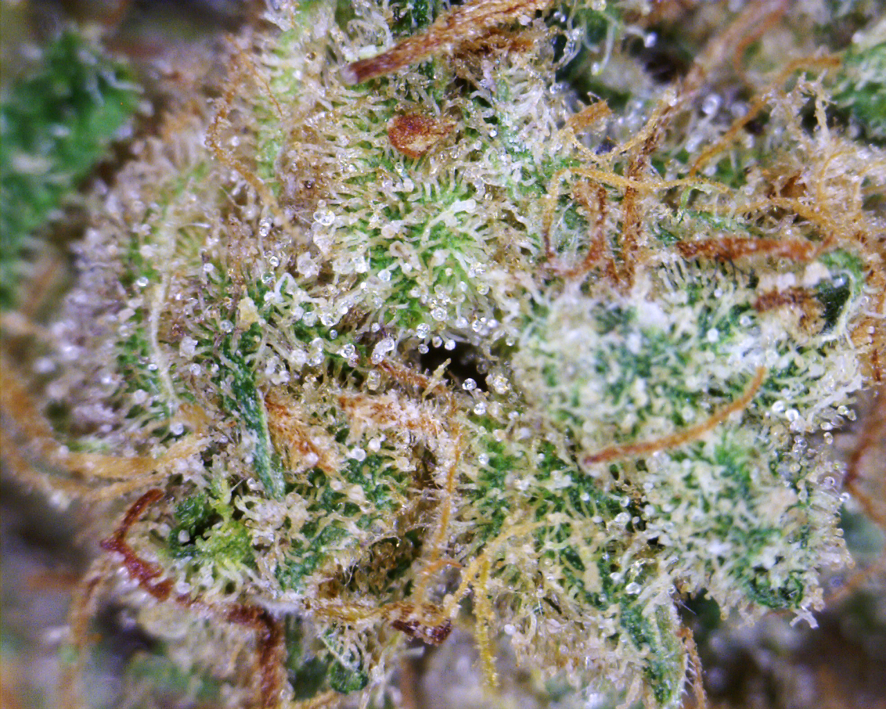 At a glance, Strawberry Kush has a great familiarity with other sativas. The bud structure has more spacing, giving it a less compact look, really filling out the bag. The pistils have receded quite a bit less than on an Indica, instead surrounding the bud and giving it that furry look. The color of the pistils varies from orange to pink, giving the overall bud an orangey-hue. The bud itself is a key-lime color with shadings of amber. Like most sativas though, its scent is what really makes it stand out.